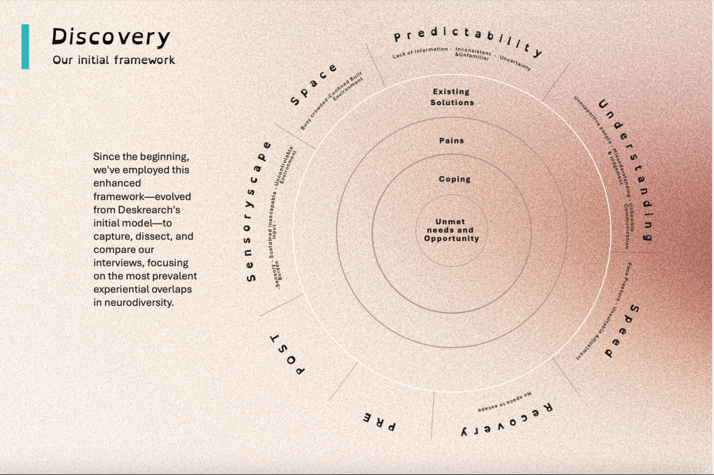 Led multi-modal research (ethnography, service safaris, expert interviews), synthesised findings through experience maps and blueprints, and facilitated co-creative workshops with neurodiverse users.