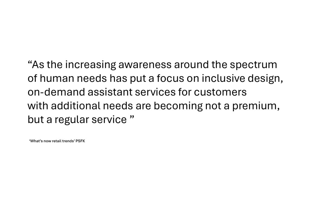 • Retail footfall is unpredictable: Even though brands invest heavily in targeted online marketing, they cannot control or predict exactly who enters their physical stores, highlighting the need for universal, inclusive in-store experiences.