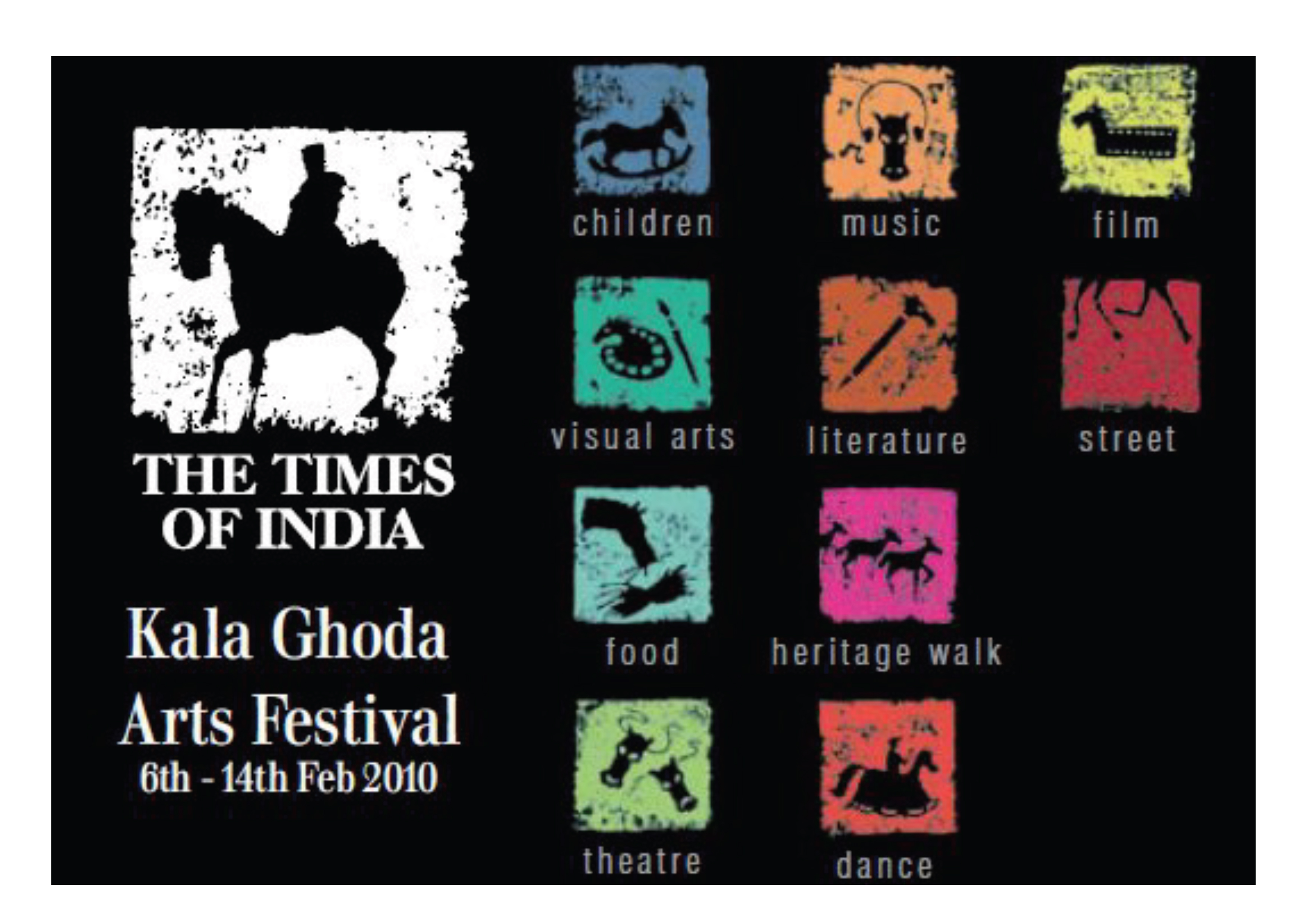 The name Kala Ghoda means Black Horse, a reference to the presence of a black stone statue of King Edward VII. The logo is an artistic version which is used till date.
