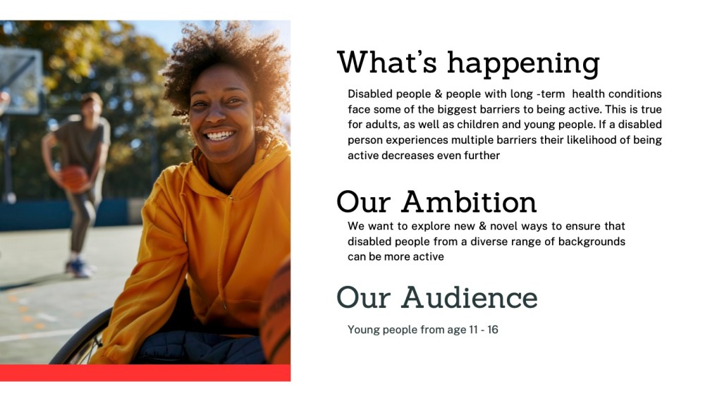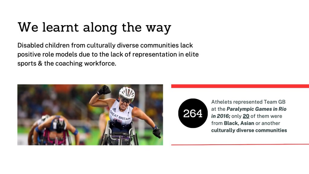 I participated in a hackathon with Sports England and the Innovation Design Unit to create inclusive solutions for disabled youth aged 11 to 16.