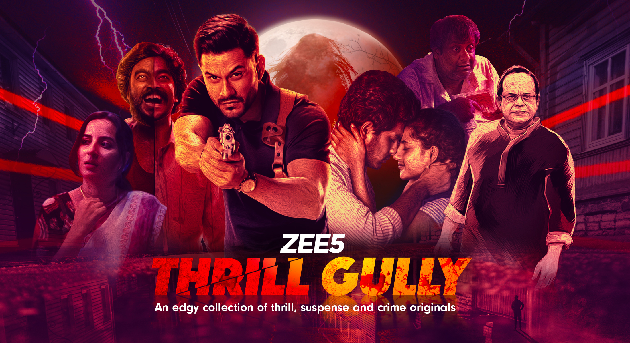 A poster designed for a collection of thrill inducing content called ‘THRILL GULLY’. The poster is designed to bring together characters of these shows mostly known as creating a depth creative. The feel is thrilling, mysterious and chilling.