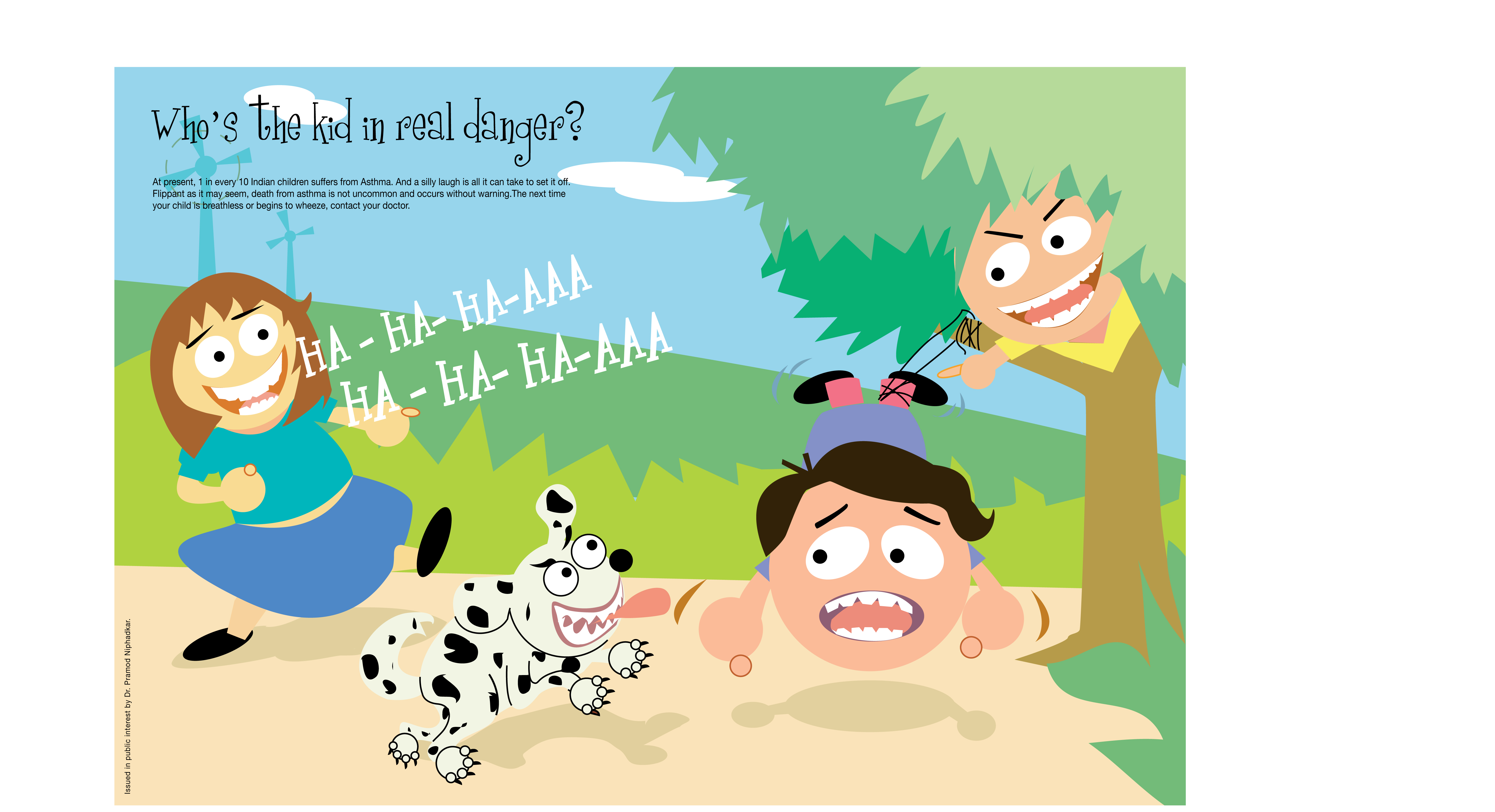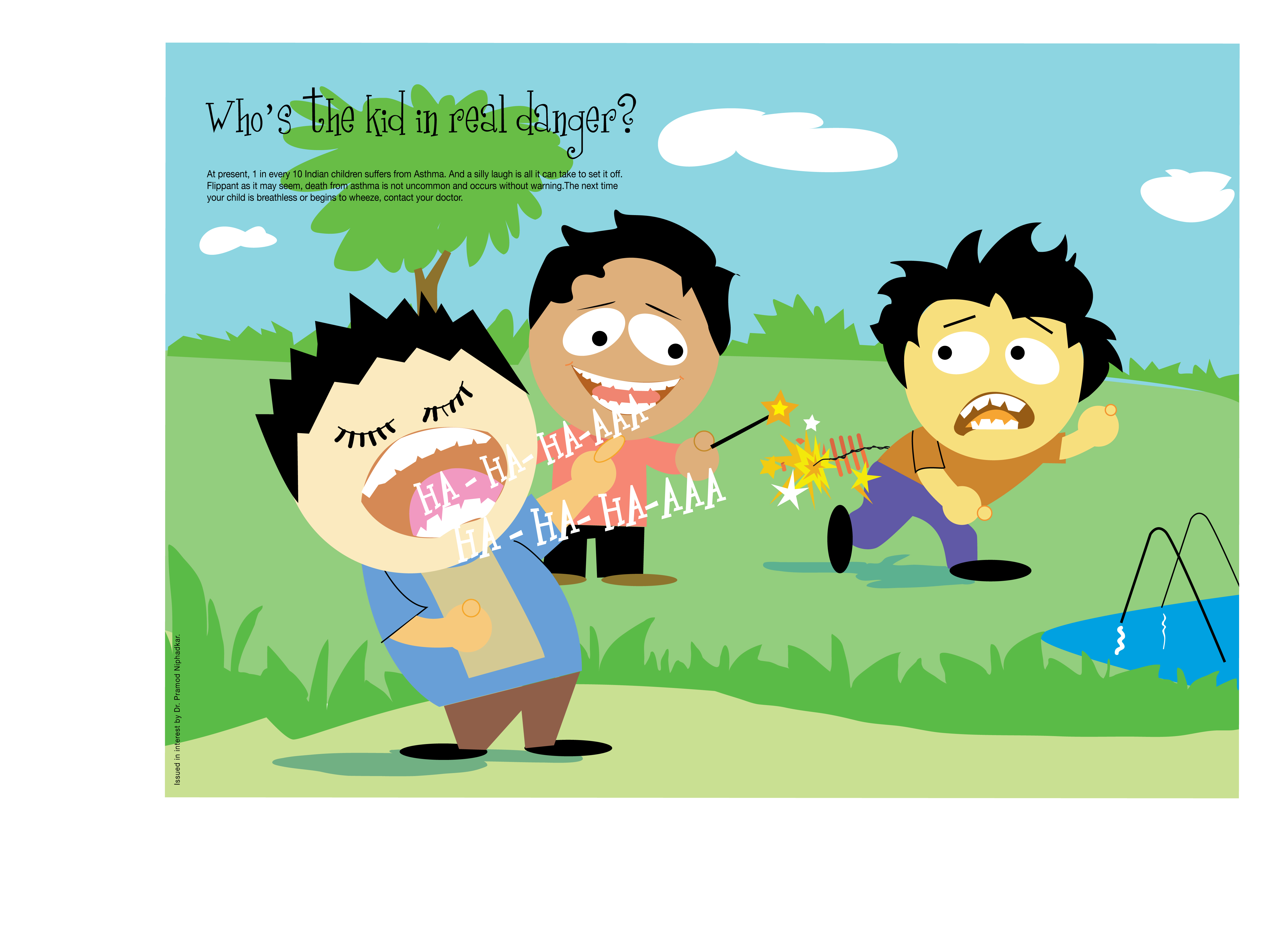 The print campaign is created for an Asthma Doctor. It was created to generate awareness about the triggers of asthma, laughter being one of them. The style adopted is to generate curiosity as normally one wouldn’t even imagine that laughter can be life threatening for a few and if one identifies this symptom in someone. One should definitely consult an Asthma Doctor.